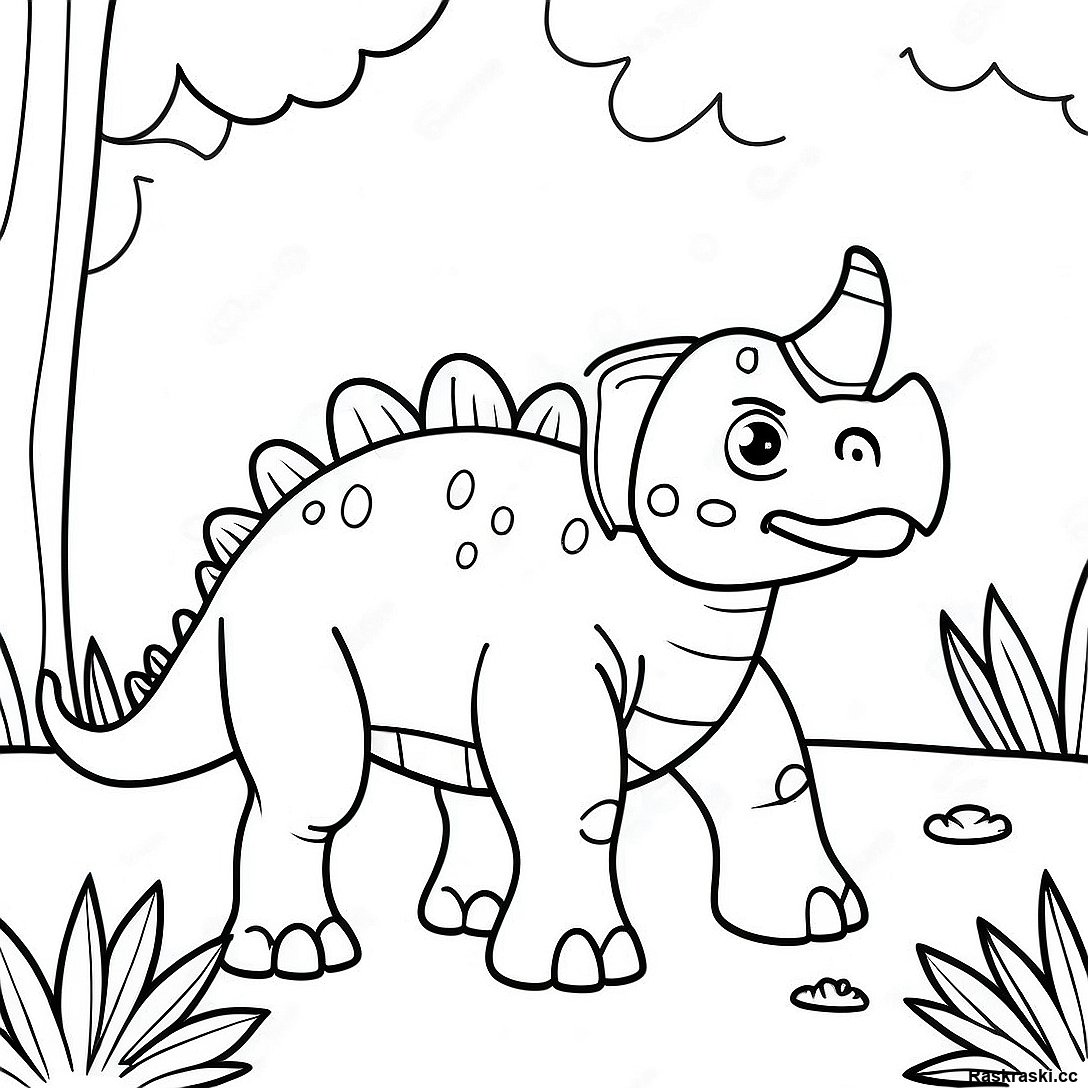 Скачать печатный PDF Реалистичный Трицератопс В Лесу - Раскраска