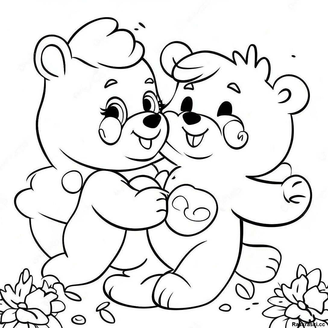 Скачать печатный PDF Счастливые Мишки Заботы, Играющие Вместе - Раскраска