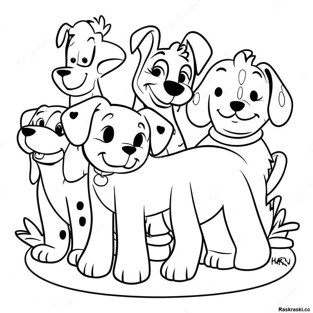 Скачать печатный PDF Щенки 101 Далматинца - Раскраска