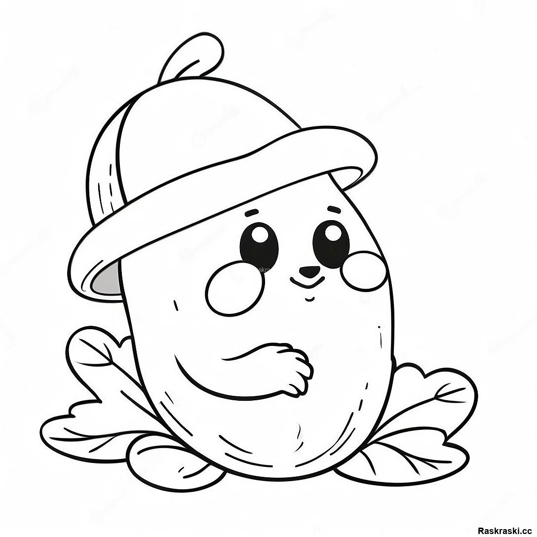 Смешной Желудь В Шляпе - Раскраска
