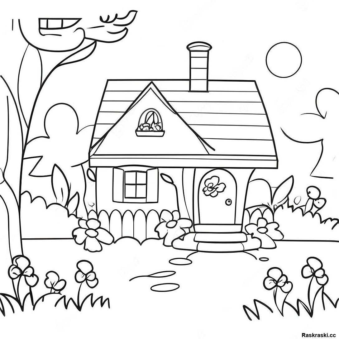 Скачать печатный PDF Страница Раскраски С Очаровательной Сценой Коттеджкор С Цветами