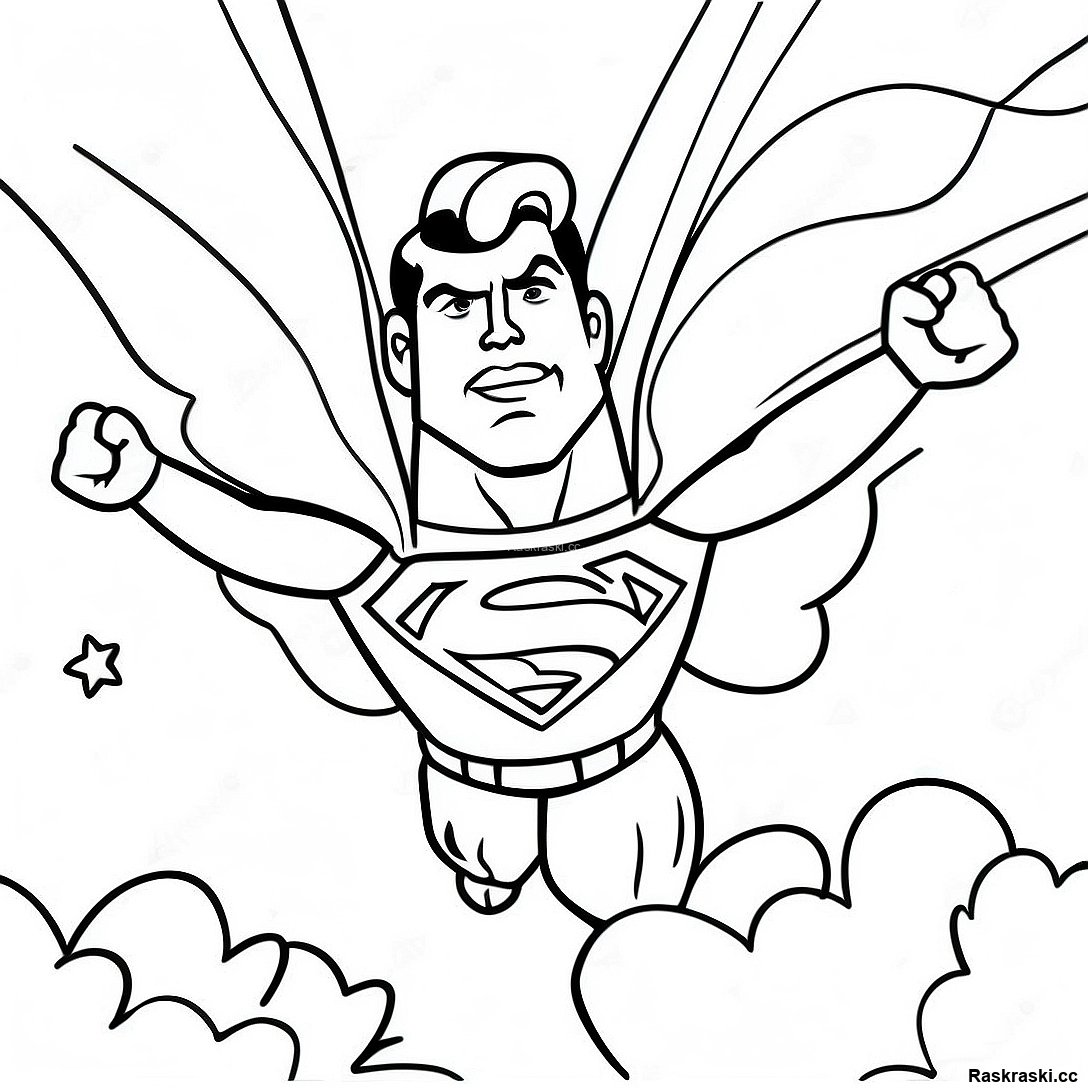 Скачать печатный PDF Супермен, Летящий По Небу Раскраска