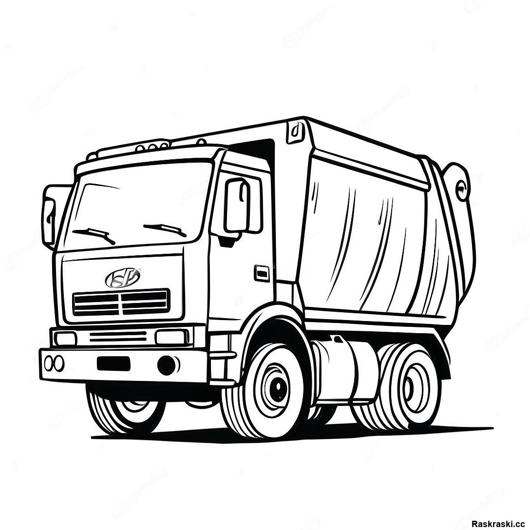Скачать печатный PDF Цветной Мусоровоз В Действии Раскраска