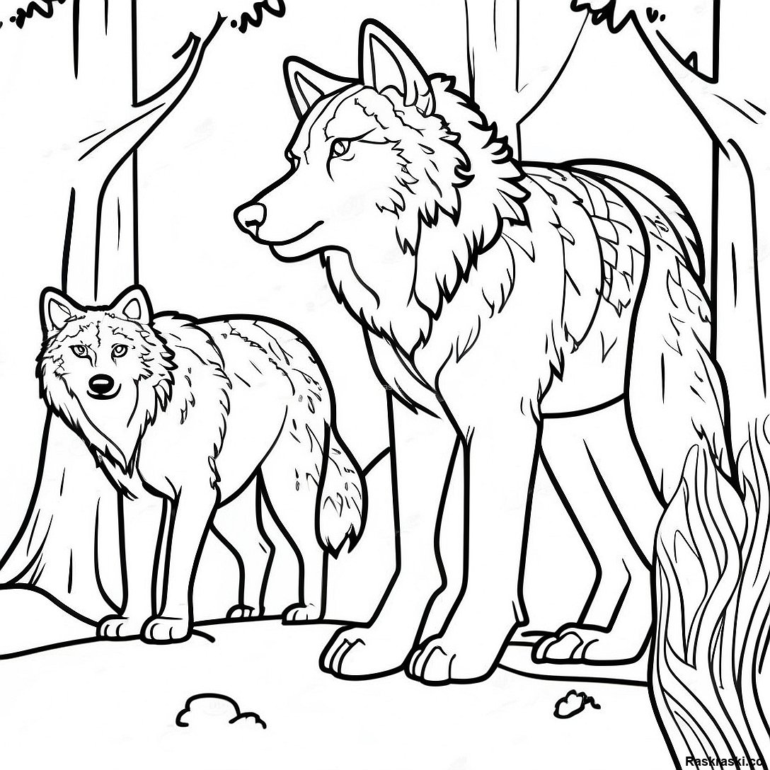 Скачать печатный PDF Величественные Волки В Лесу - Раскраска