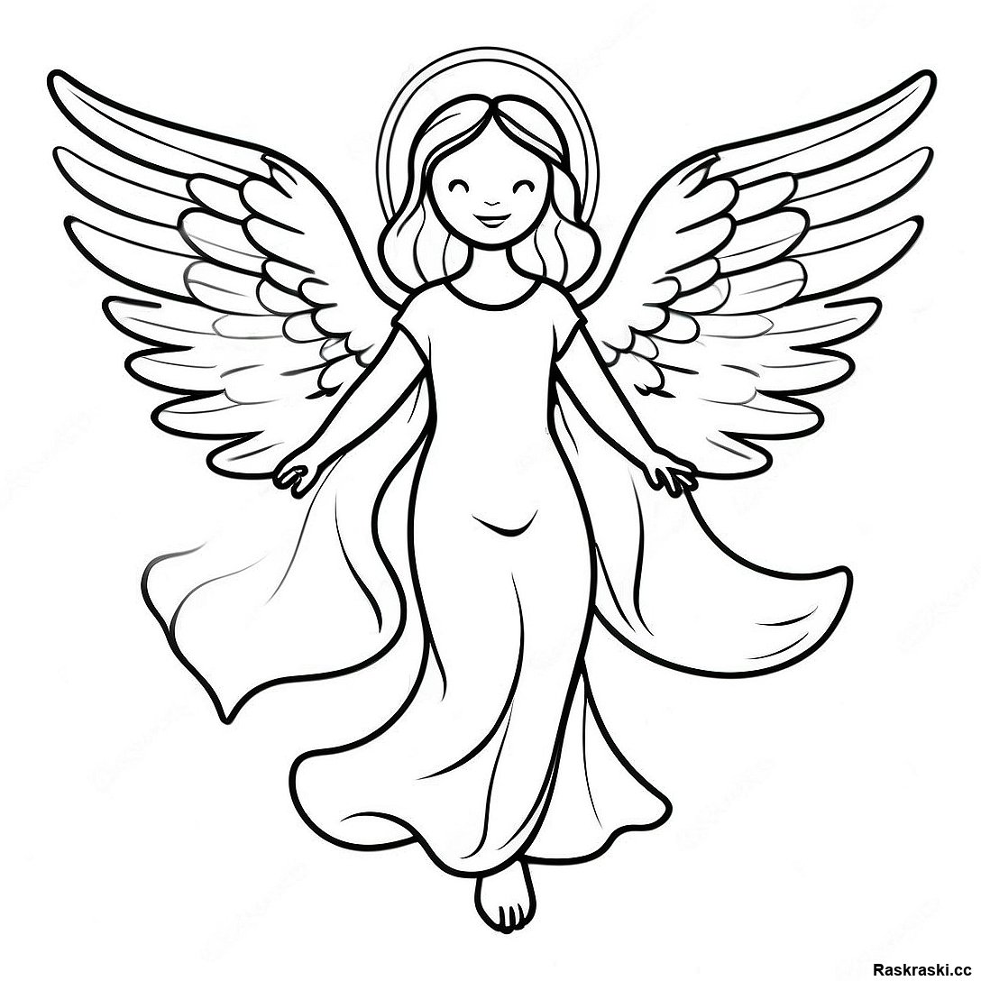 Скачать печатный PDF Величественный Ангел С Крыльями Раскраска