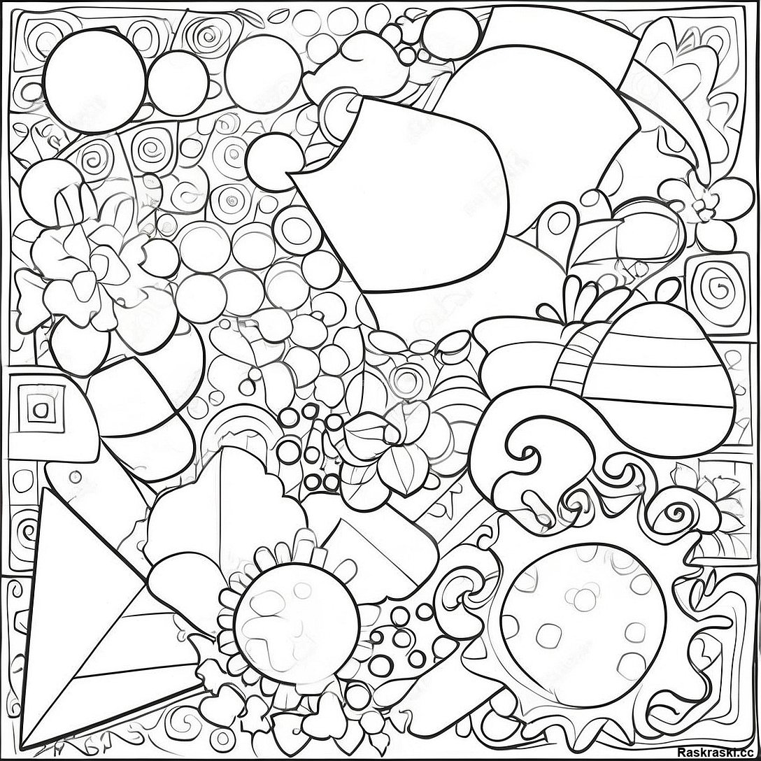 Скачать печатный PDF Веселые Геометрические Фигуры - Раскраска