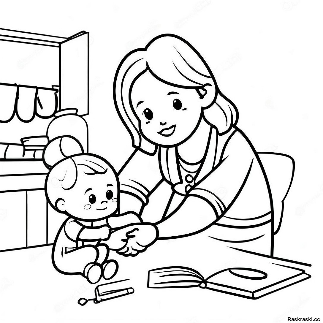 Zabotlivaia Mama Pomogaet Rebenku Raskrashivat 116517 51865