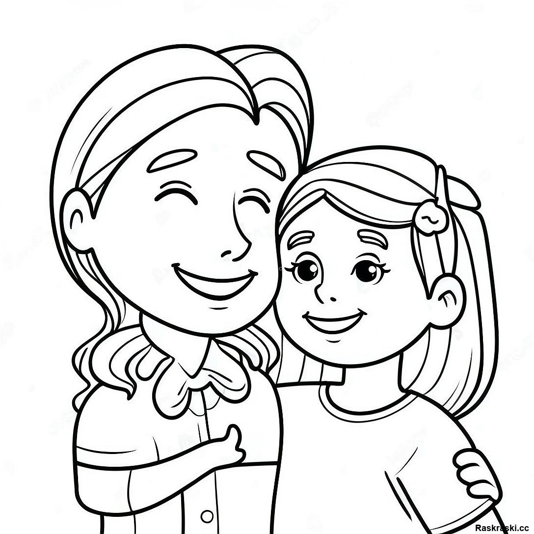 Скачать печатный PDF Заботливая Семья Обнимается Раскраска