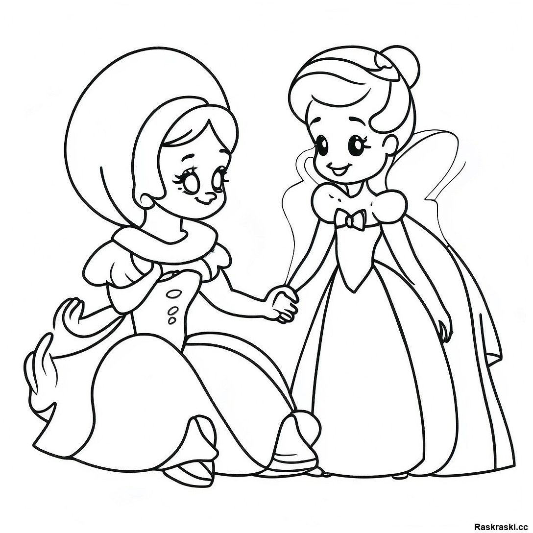 Скачать печатный PDF Золушка С Ее Волшебной Феей-Крестной Для Раскраски
